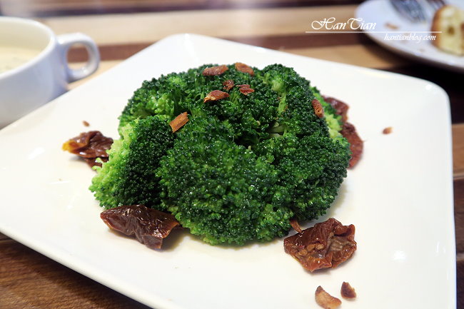 這道作法很簡單,將花椰菜川燙過後,淋上蒜油,簡單調味