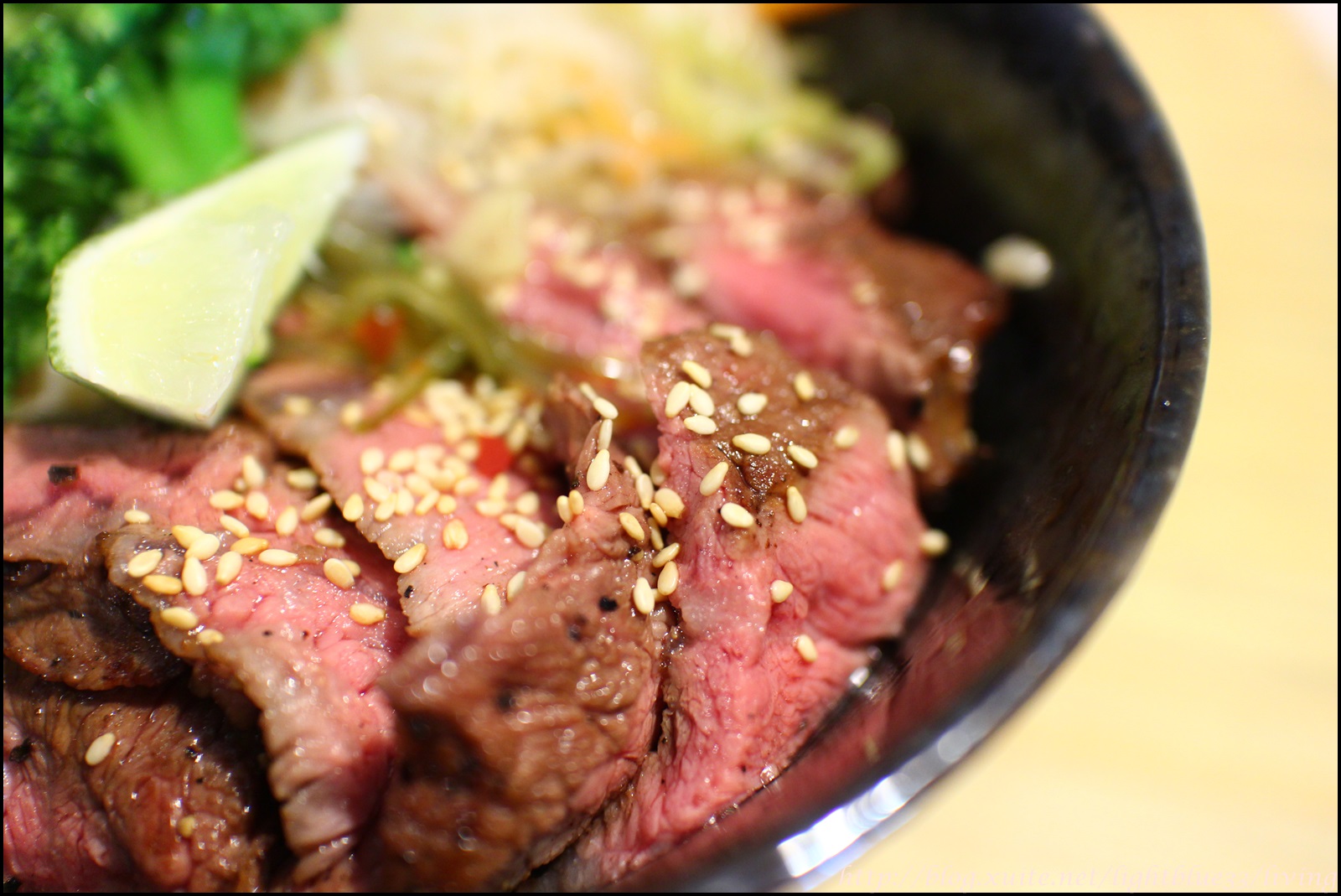 厚切牛排丼有漂亮的粉紅色,不過吃起來並不會覺得太生,大概接近五分熟的程度