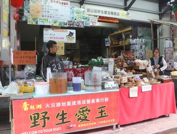 老街西側尾端因意外而造成火災,現在愛山屋愛玉在火災遺跡重建賣起來野生愛玉。