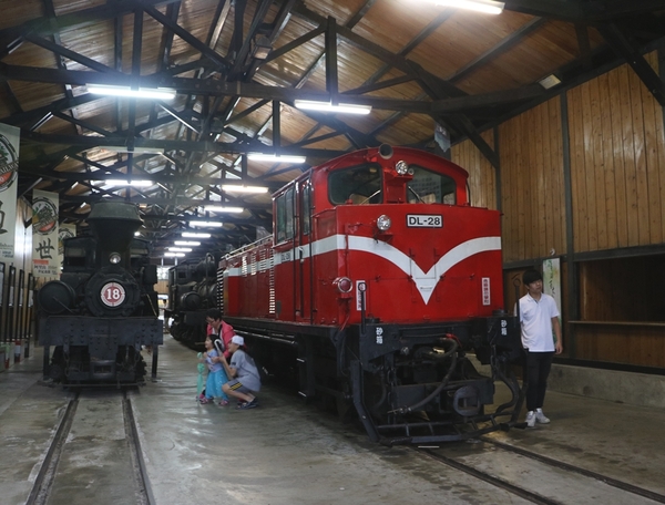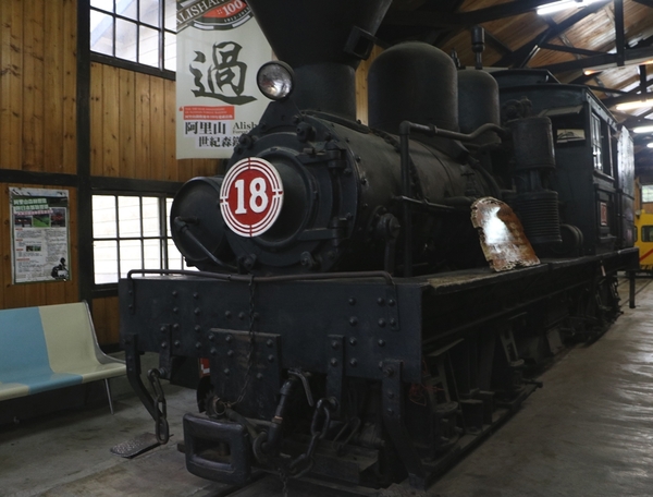 奮起湖4景之三,昔日阿里山車庫轉變為奮起湖火車展示館,裡面有展示動力的柴油車與18號、29號蒸汽火車。