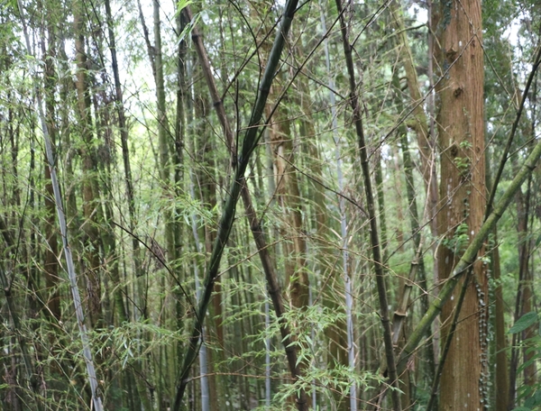 順著舊車站前方樓梯往上走,奮起湖4景之二,來自四川峨嵋的四方竹。這竹子看起來是圓形的,摸起來卻是四方形的!!