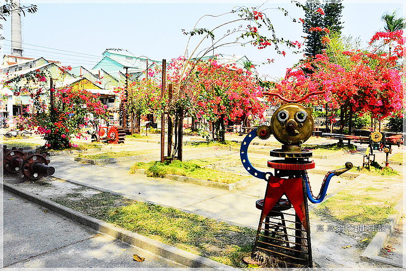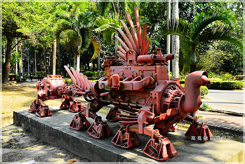 在園區內還可以看到藝術家使用糖工廠廢鐵件重新再利用變為裝置藝術作品、