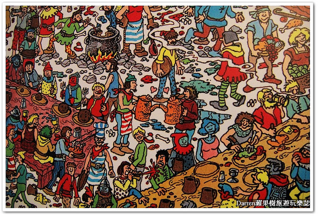 兒童遊戲書就是在一張人山人海的圖片中找出一個特定人物~紅白衣著的威利
