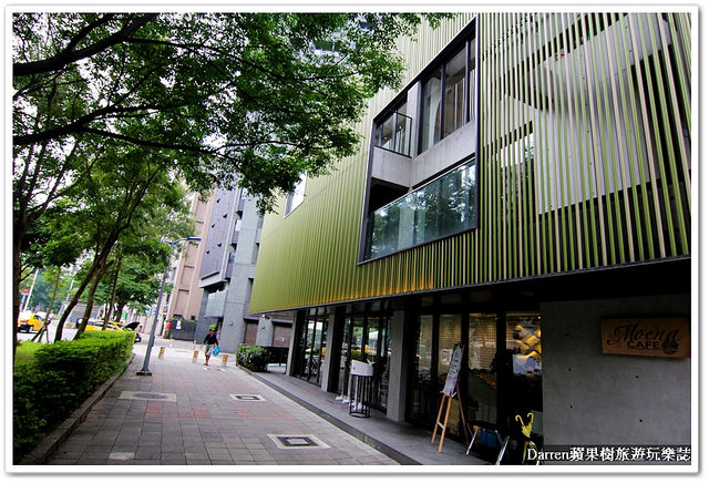 Moena Cafe就開在台北光復南路308巷,這一帶有很多美食進駐,綠色建築物很有特色