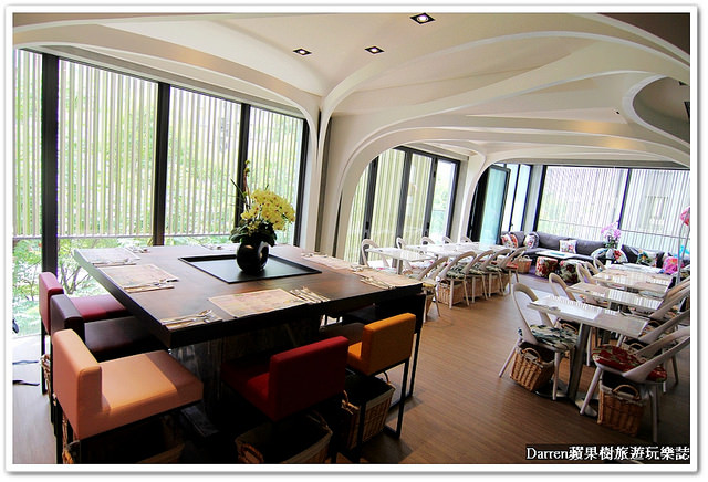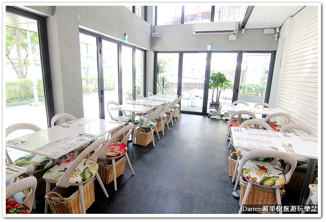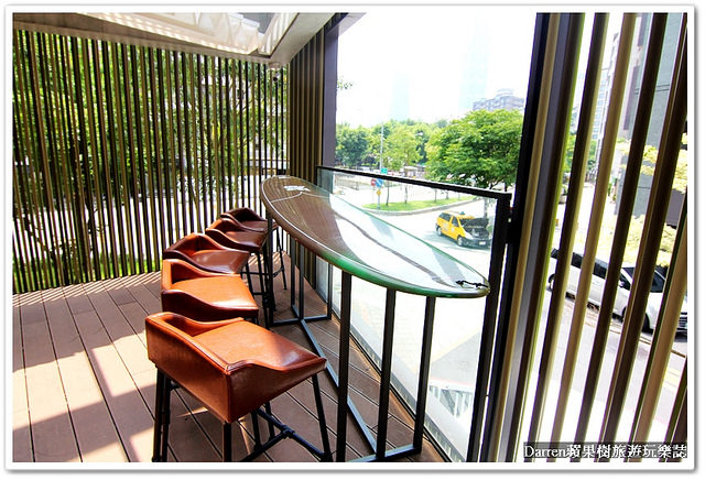 戶外座位的桌子很特別,是用衝浪板來作為桌面很有質感,如果看出去是海景就超棒(想像XD)