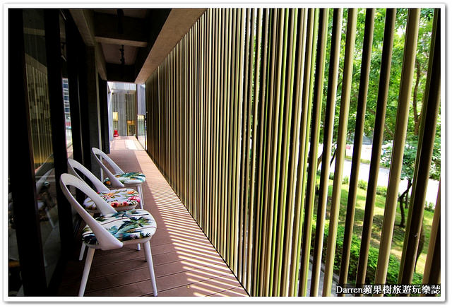 從外觀看到的綠色竹子來到二樓戶外用餐空間,穿透竹子間的光影拍起來很美