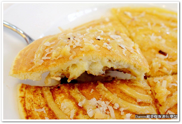 鬆餅入口後餅皮口感香Q,原來香蕉藏在鬆餅下面很好吃,肉桂味並不會很明顯個人偏愛這款鬆餅