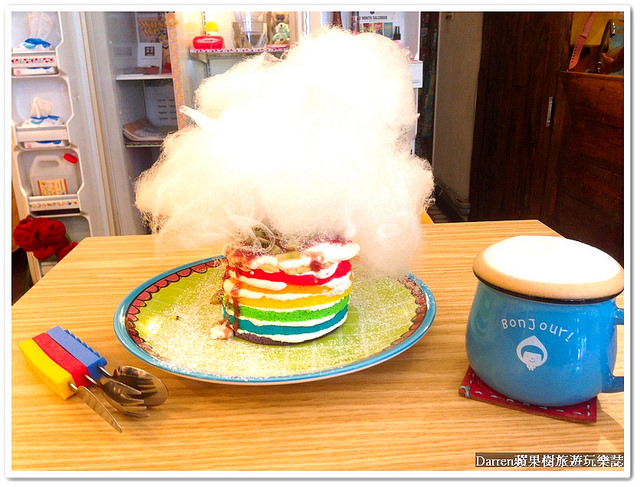 餐具也很可愛,與彩虹蛋糕整體擺盤上很搭