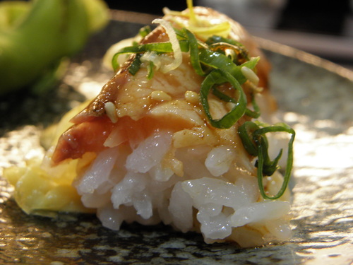 那鮭魚片的鮮甜魚香醬香及醋飯香融化一起