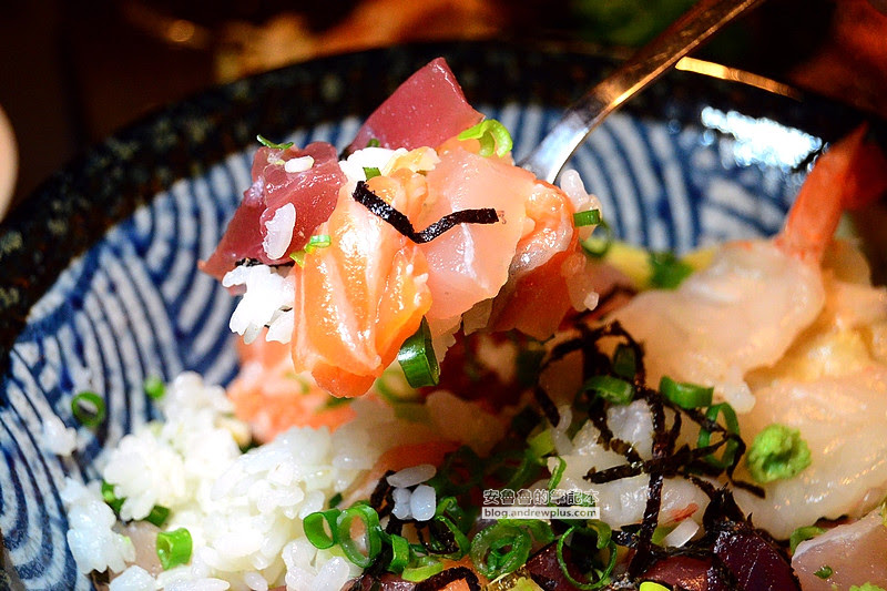 ▼有一種吃法是直接把醬油淋在整碗的丼飯上稍微的攪拌之後再吃,這樣子每一口吃起來都會有一點鹹味,不過安魯魯比較習慣把飯和魚肉全部都塞到嘴裡面去,然後再吃一點山葵和醬油到嘴裡,讓味道在嘴巴裡融合在一起,這樣會比把整碗散壽司攪的爛爛的要好看一點!塞到嘴裡也就不會被看見了~