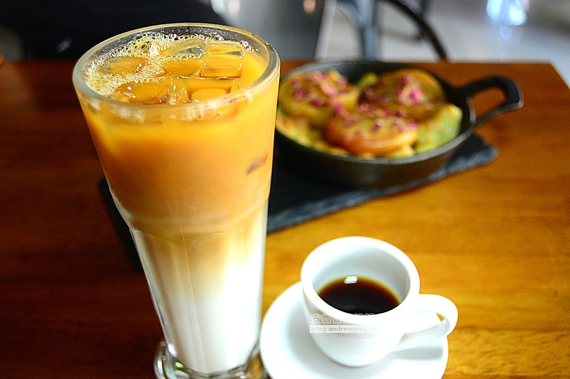 一杯兩種享受,每日依照使用的咖啡豆不同,定價有所差異,可先向店員詢問。這次喝到的是瓜地馬拉(Geisha Wash),以上下兩層的方式沖泡出140cc的咖啡,20cc做為濃縮享受原本的酸味和巧克力味。120cc做為拿鐵,可以選擇冰熱,咖啡和牛奶均勻混合後又是另一種完全不同的風味