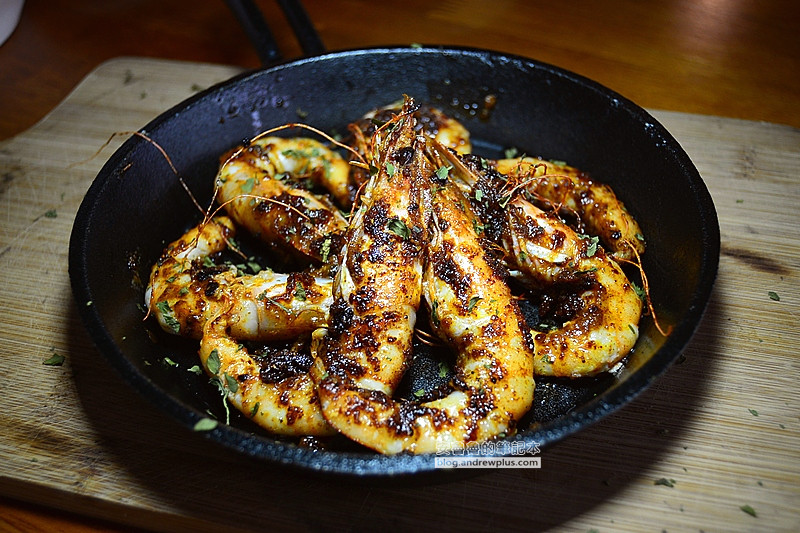 七隻去殼大蝦,加上特殊醬汁,入口Q彈的口感,鮮甜的蝦肉混合帶有類似墨西哥辣椒香氣的鹹辣醬汁,對比大家熟知的紐奧良風味,路易斯安納風味也是美國很普遍的一種料理味道,主要的調味是卡薑粉,成分是辣椒粉、甜椒粉、義大利香草、醋和蒜,超市裡面也能夠買到卡薑粉的醬汁。