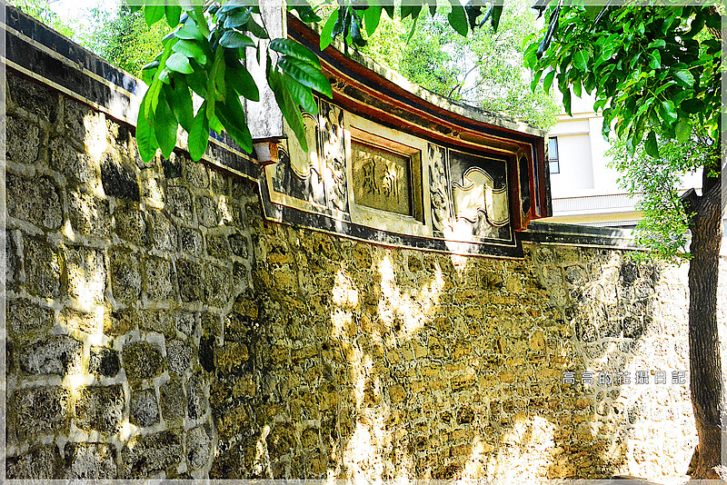 橫額『訓風』兩字嵌在石牆內,左右並有泥塑的書卷造型裝飾。