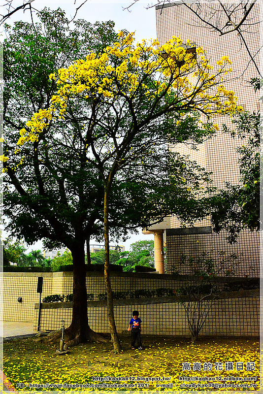 看到盛開的黃花風鈴木,這天還看到有小朋友開心的也在這邊賞著花兒呢!