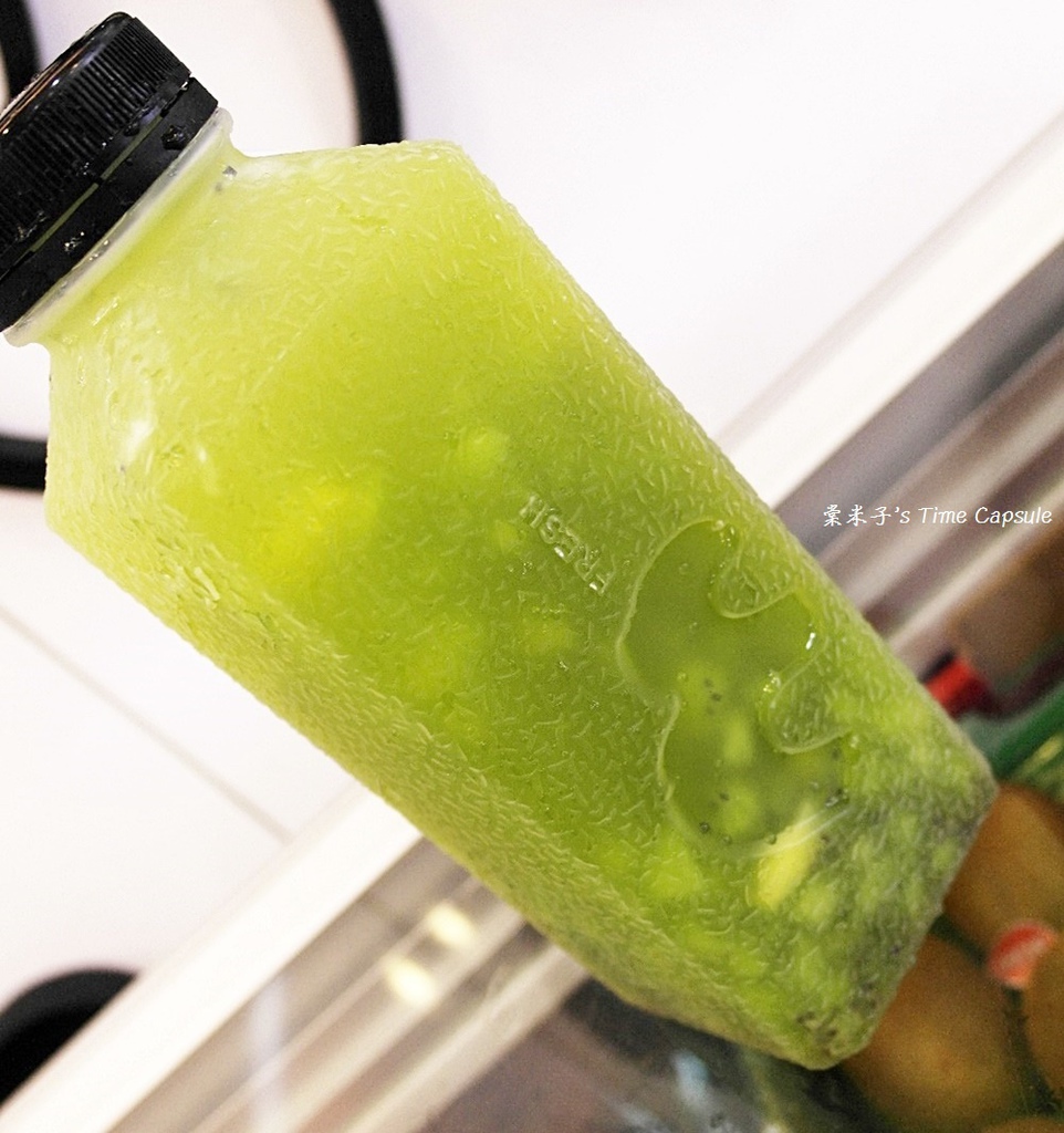 將近半瓶身的奇異果肉滿滿的沉澱在瓶底,