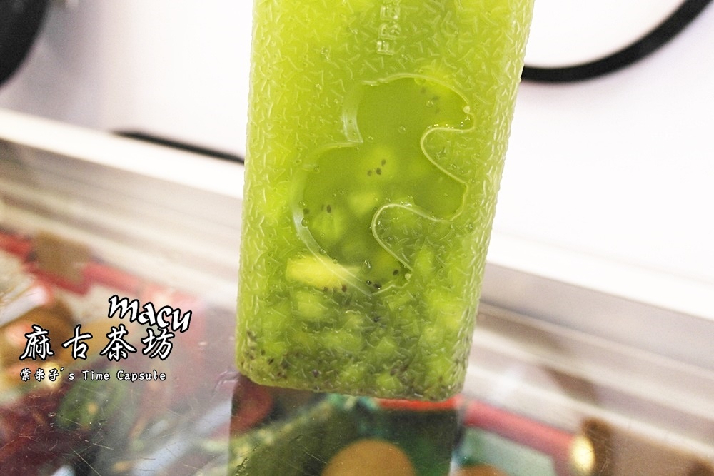 漂亮的青綠色茶飲裡是滿滿的奇異果果肉唷!