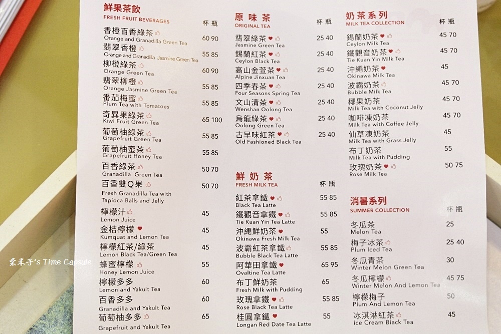 鮮果茶飲、原味茶、鮮奶茶、奶茶和其他消暑飲品,
