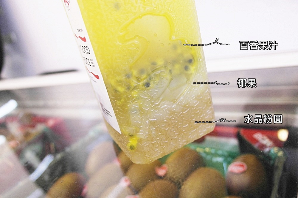 除了百香果果粒還多添加水晶珍珠和椰果增加口感,