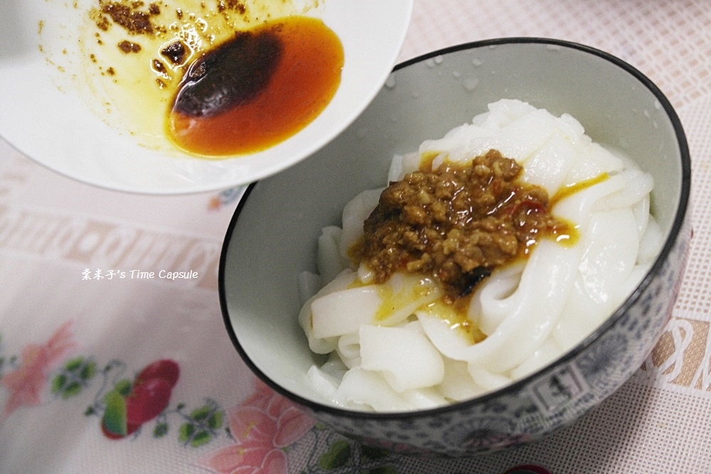 香辣的打拋醬拌上客家粄條味道超濃郁,