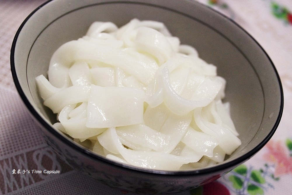 白色的粄條剛煮好還帶著漂亮的光澤,