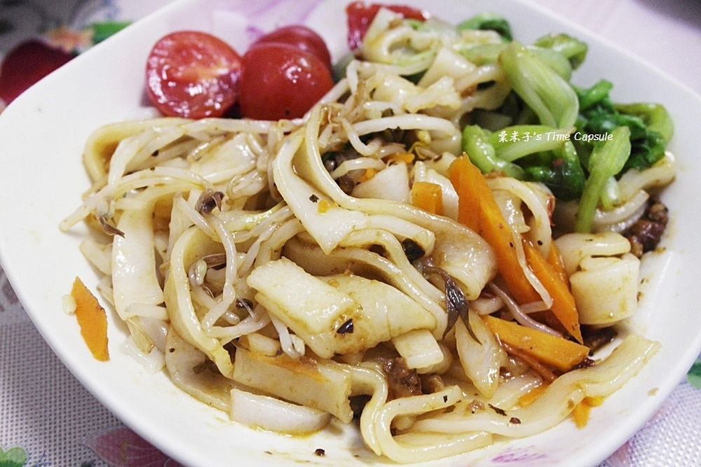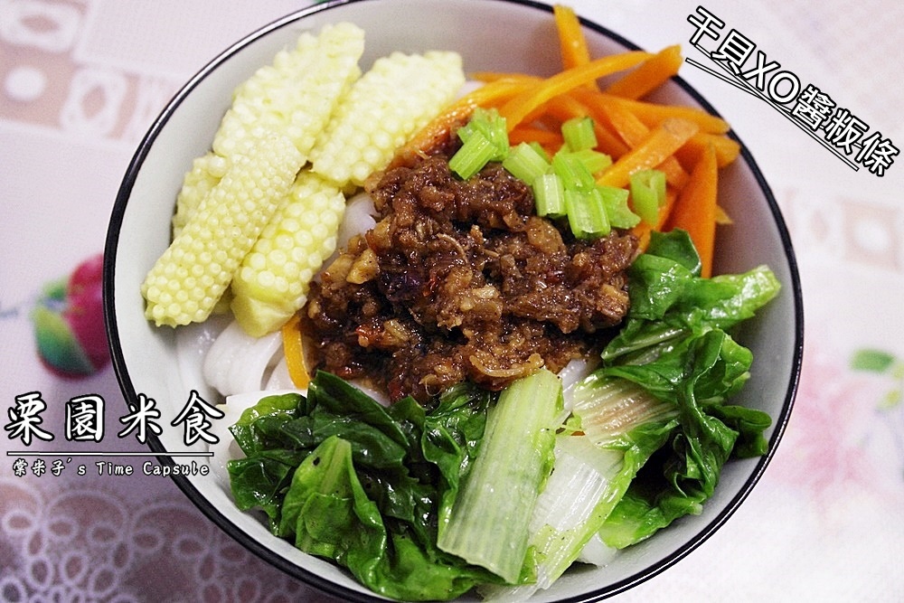 干貝XO醬粄條加上一些蔬菜就是營養滿滿的料理哪!