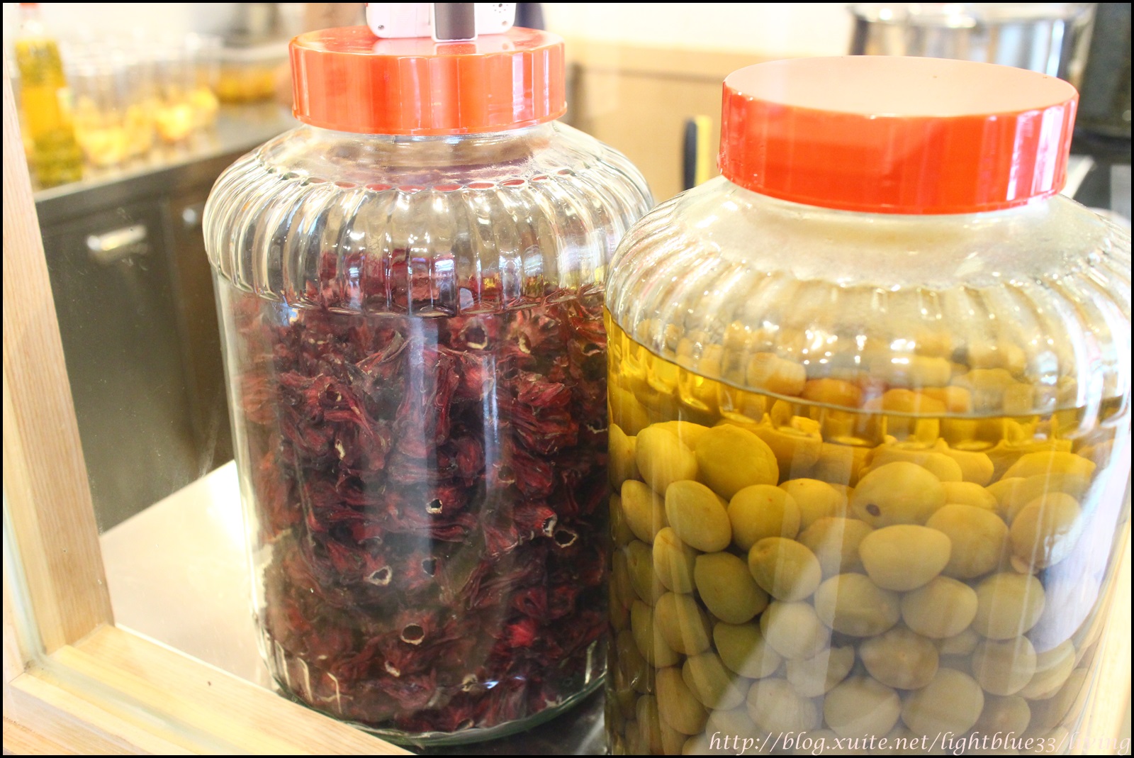 另一邊很大的空間是給了以透明玻璃公開製作過程的廚房,這一大瓶洛神花跟醃梅子看了就讓人不禁直分泌唾液