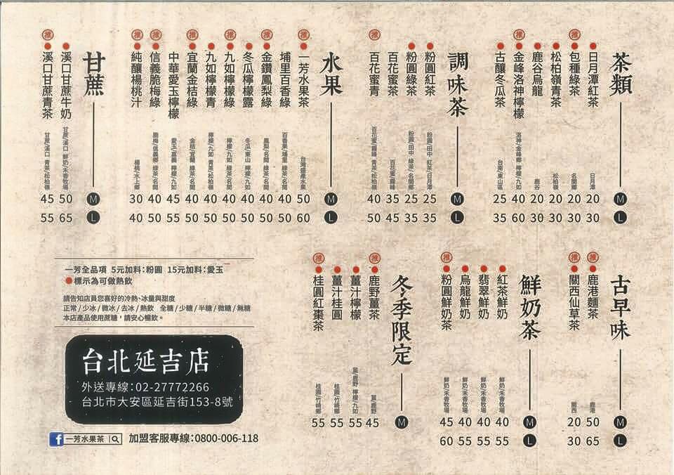 這家一芳水果茶在延吉街上,話說這一排還真是不少飲料店,不過一芳倒是一直都有人在排隊,但還好等待時間不會太久