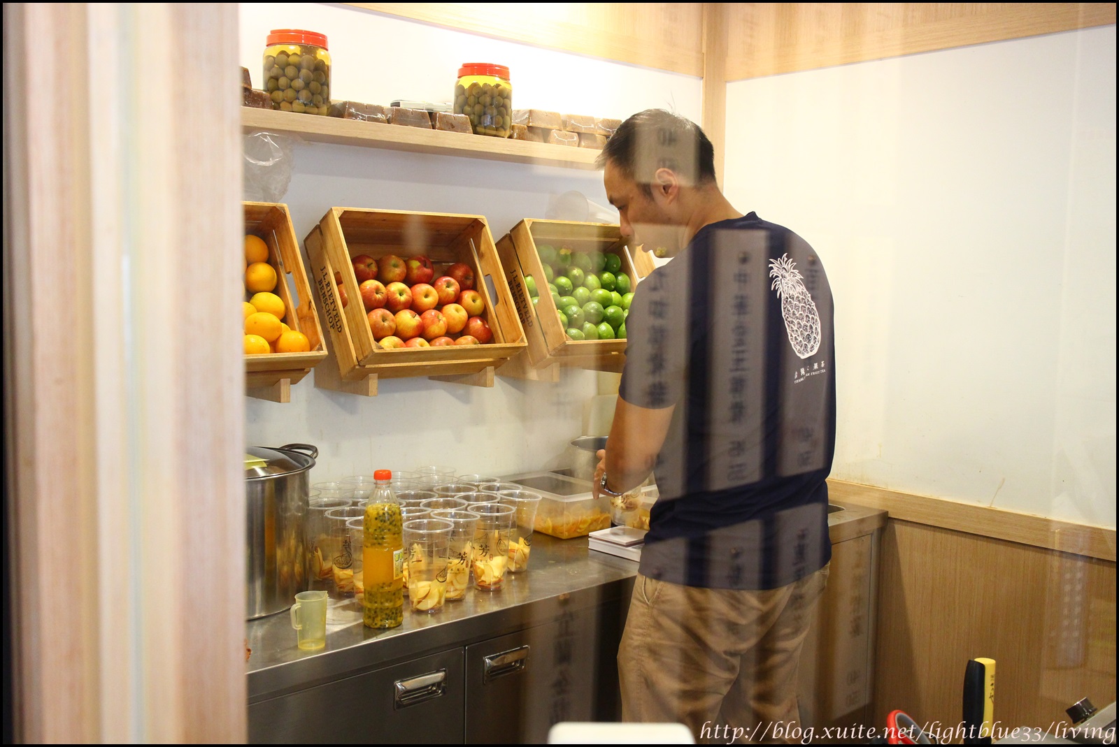 店加強調都採用當令盛產水果,絕不添加任何濃縮汁調味,滿口都是水果自身的鮮甜,可以看到工作人員在杯子裡放了好多的水果切片要作水果茶,非常真材實料