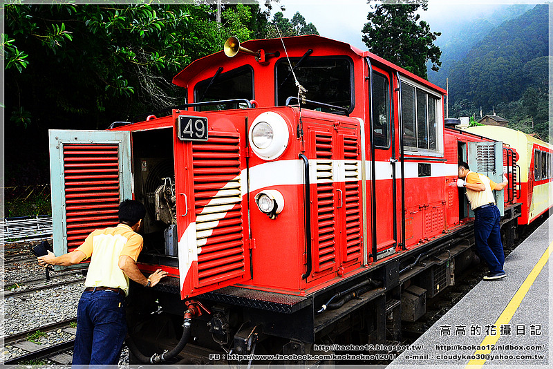 我們這天來到奮起湖車站月台處時,剛好看到工作人員在整理列車頭,