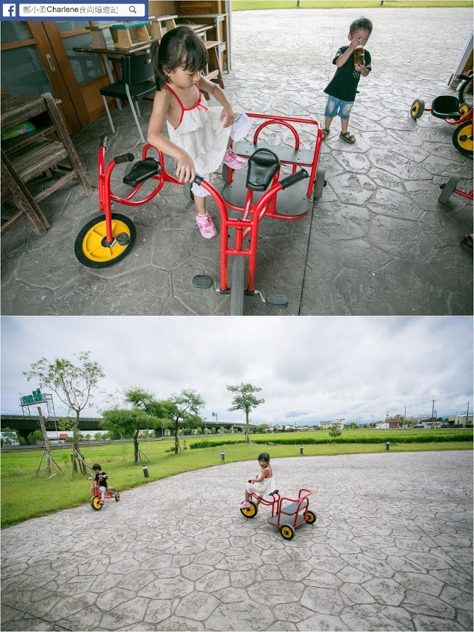 500坪廣場讓孩子跑跳,並有戲水池、腳踏車、親子板凳彩繪DIY