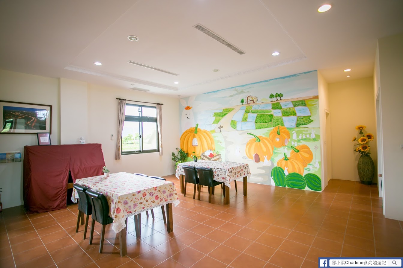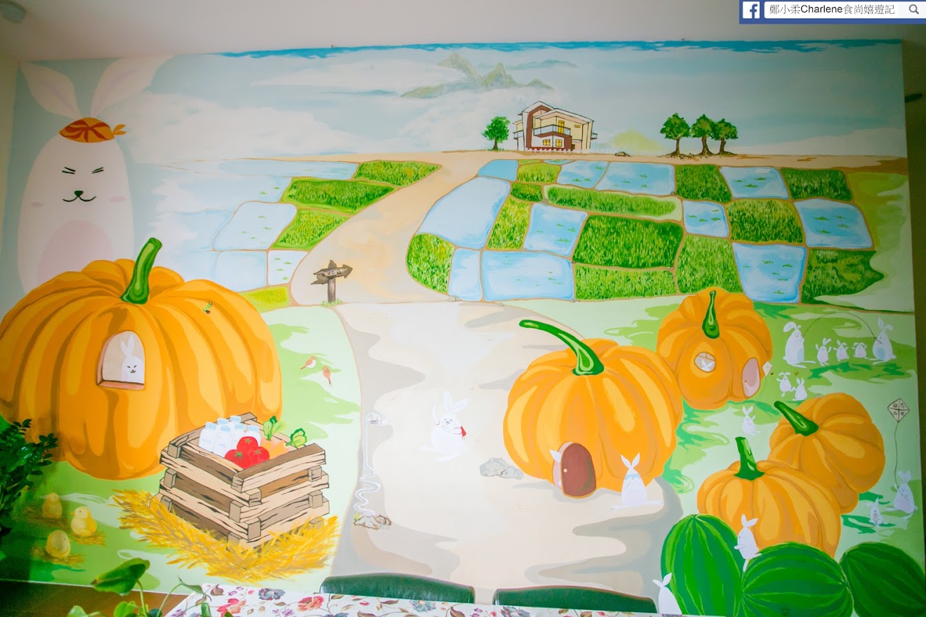 大片牆面上的圖畫,是田念的房客所繪,以南瓜、兔子、田園