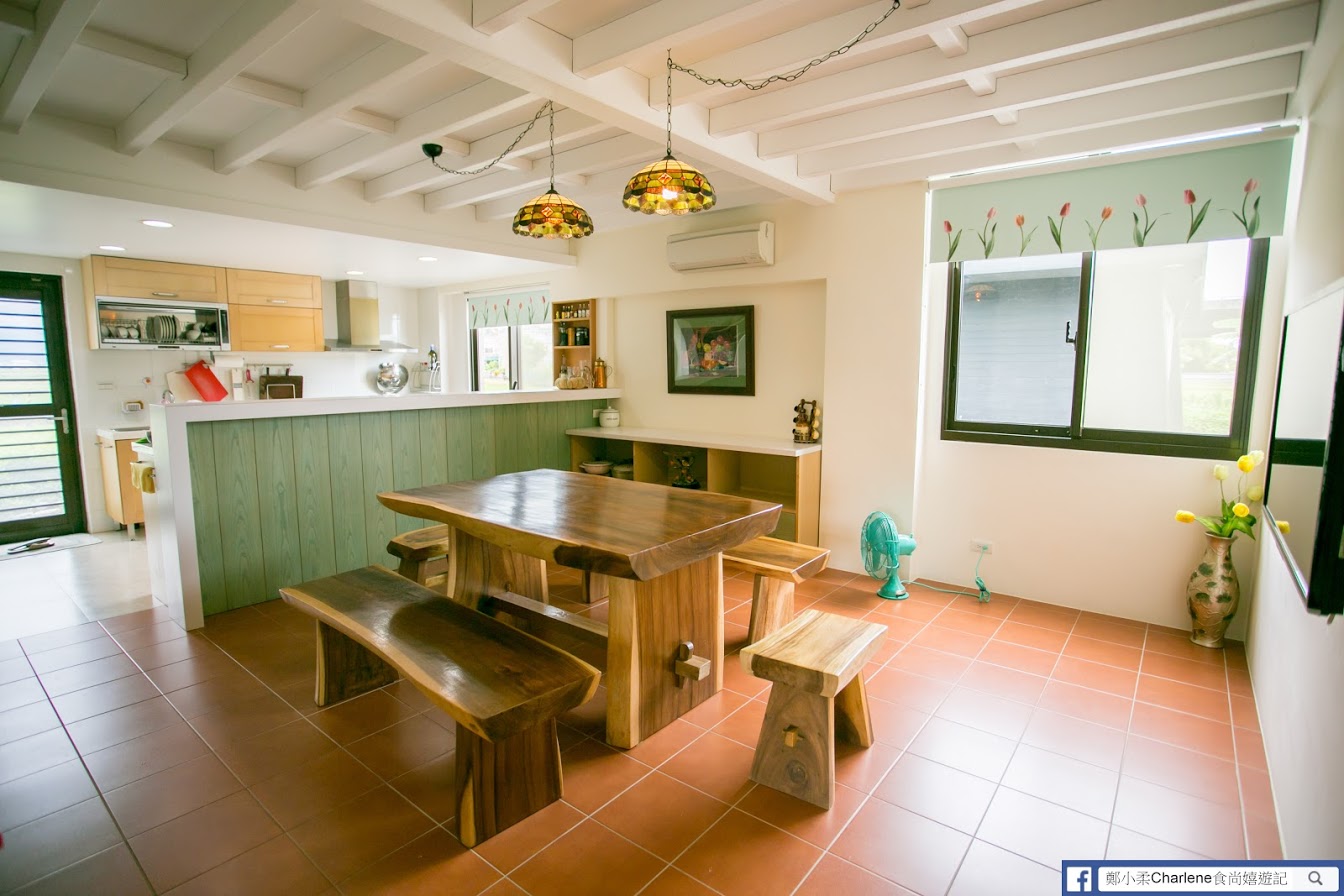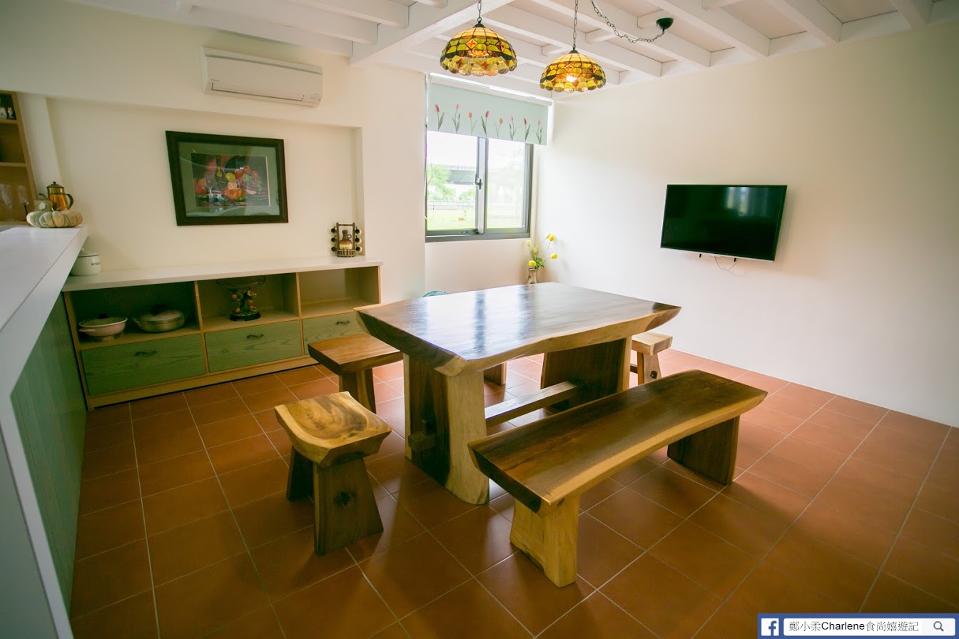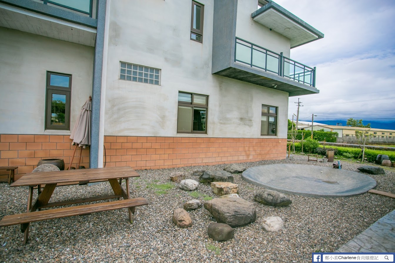 民宿有主建築跟倉庫區(DIY教室),庭院還有設計戲水池及擺放木質桌椅