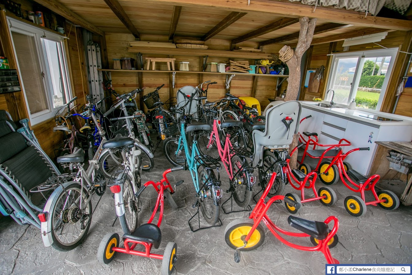 倉庫內擺放了各式腳踏車,還有親子車、兒童遊戲車等,數量繁多,任君挑選