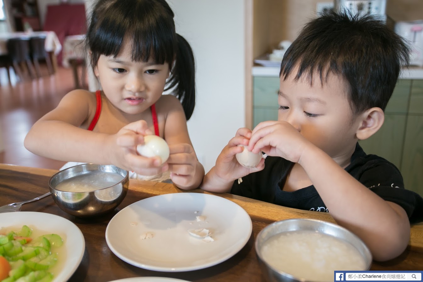 這項福利只限定小朋友啦! 姊弟倆看到滑溜溜的雞蛋,開心得不得了啊~