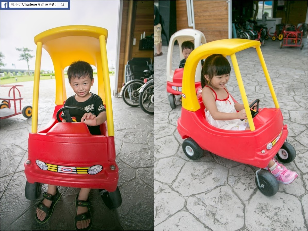 小孩看到那麼多遊戲車向他們招手,迫不及待的想要騎到庭院飆車啦~