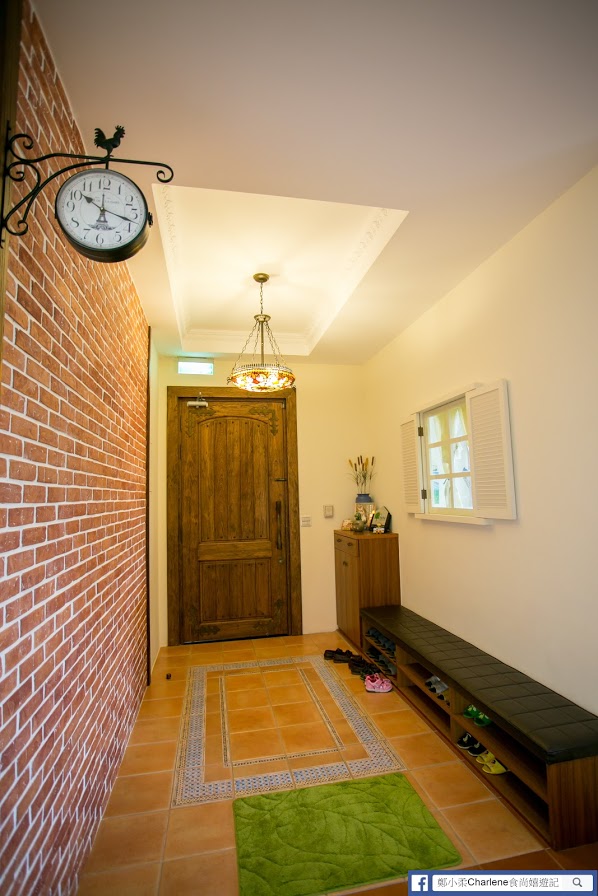 與室內紅磚牆面、歐式時鐘搭配,帶有些許的童話鄉村風格。