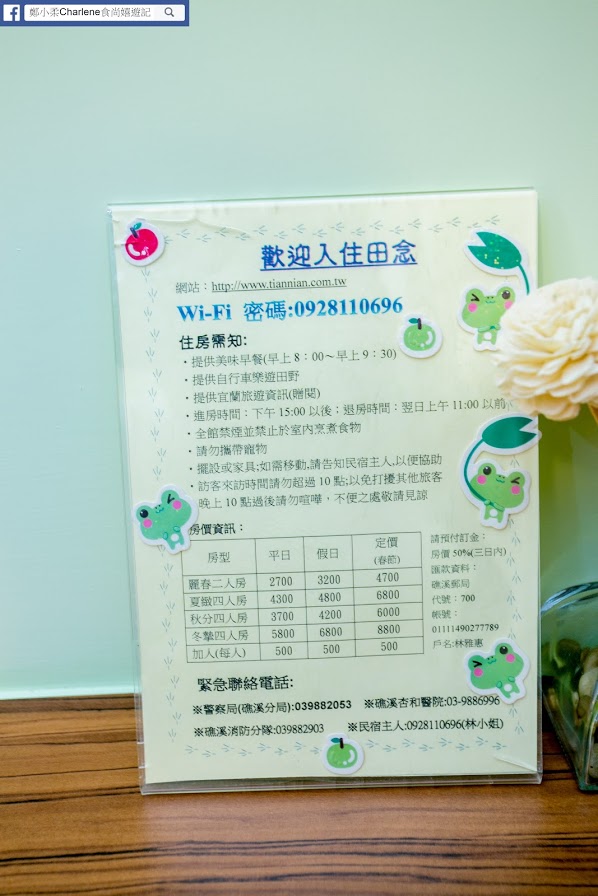 1.按讚加入FB「田念民宿」、「鄭小柔Charlene食尚嬉遊記」粉絲團按讚加入追蹤。
