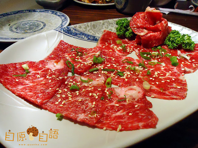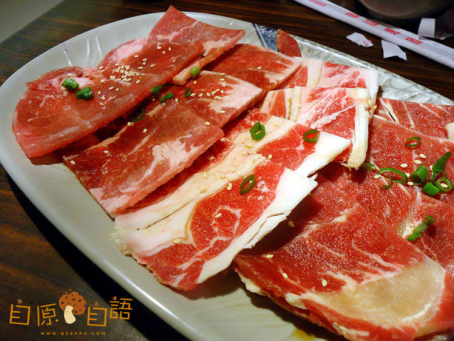 八番的牛肉分別從紐西蘭,澳洲以及美國進口,老闆在進貨前要求進口商出示檢驗合格證書,力求肉類食用安全,嚴格把關食安。菜單上也註明了肉類的原產地,替顧客掃除食安之慮,不過喜愛牛肉的捧油們,單從油花分佈及肉色就知道......這肉是好棒棒的!隨便烤兩下就很好吃了!老闆表示新鮮的肉根本不需要什麼調味,單純的吃,就吃得出肉肉最純粹的味道!(下圖:板腱牛肉)