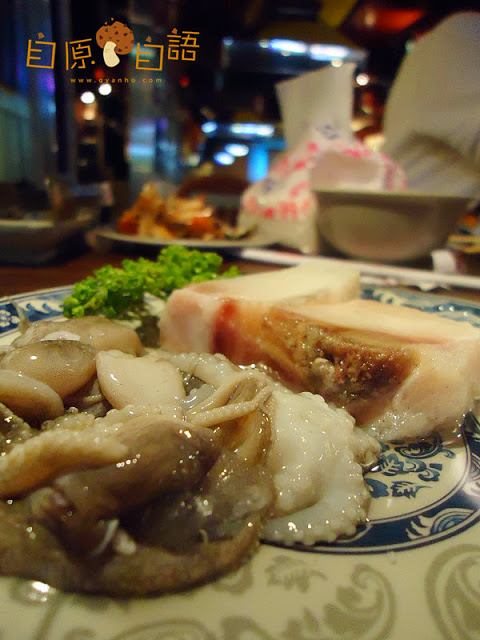 (上下圖:小香腸,脆烤肥腸,以及......我忘了那是什麼肉的肉~哈哈哈)