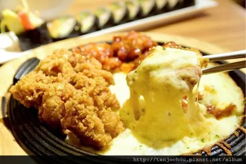 醃製過的原味炸雞,不油膩的香酥脆,還保有肉汁,沾上濃濃的起司,滑嫩可口。