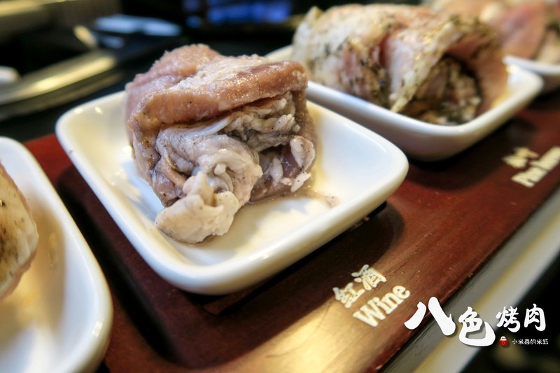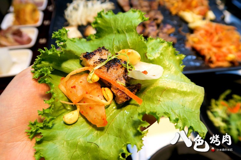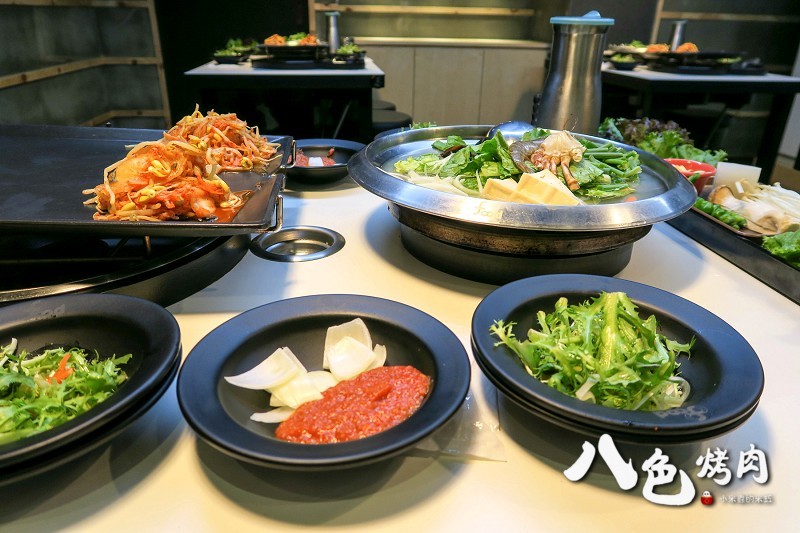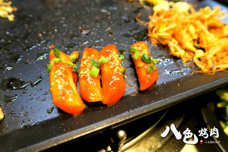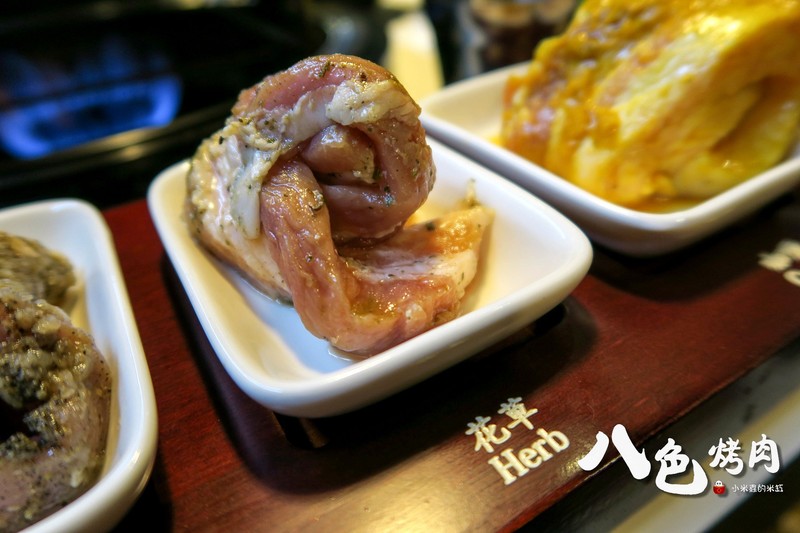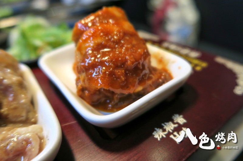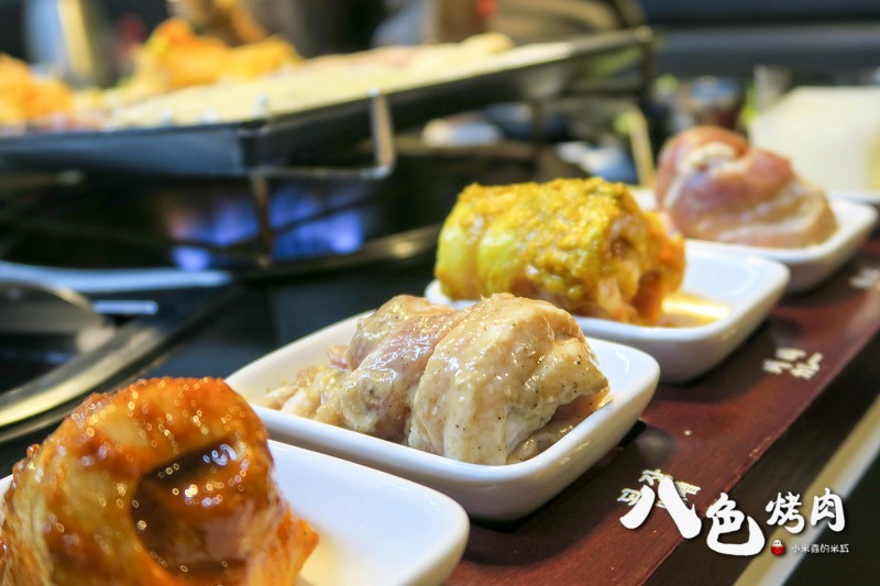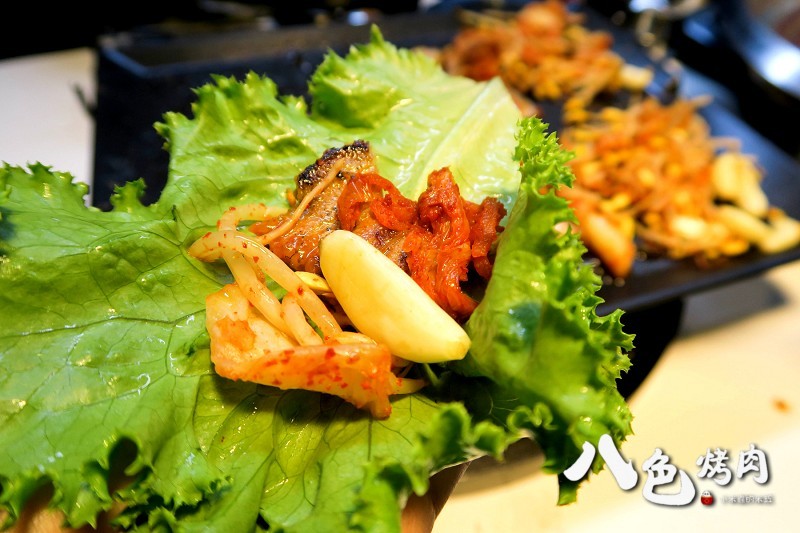 八色烤肉依序分別是「人參、紅酒、松葉、大蒜、花草、咖哩、大醬、辣椒醬」八種口味的韓式烤肉
