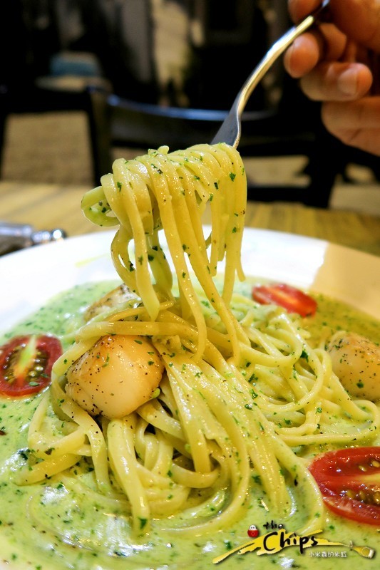 細扁麵的口感比較滑Q,醬汁的青醬比例偏重,但還是能吃到濃郁的奶香味~