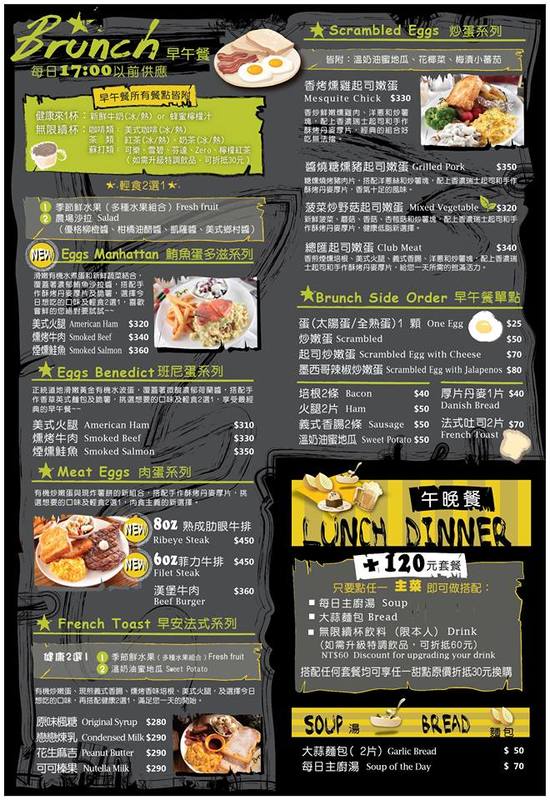 附每日主廚湯、大蒜麵包、無限續杯飲料