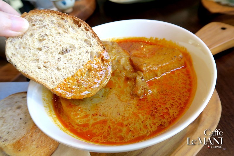 麵包也Q軟帶有嚼勁,搭上咖哩一起入口,非常的美味喔!!