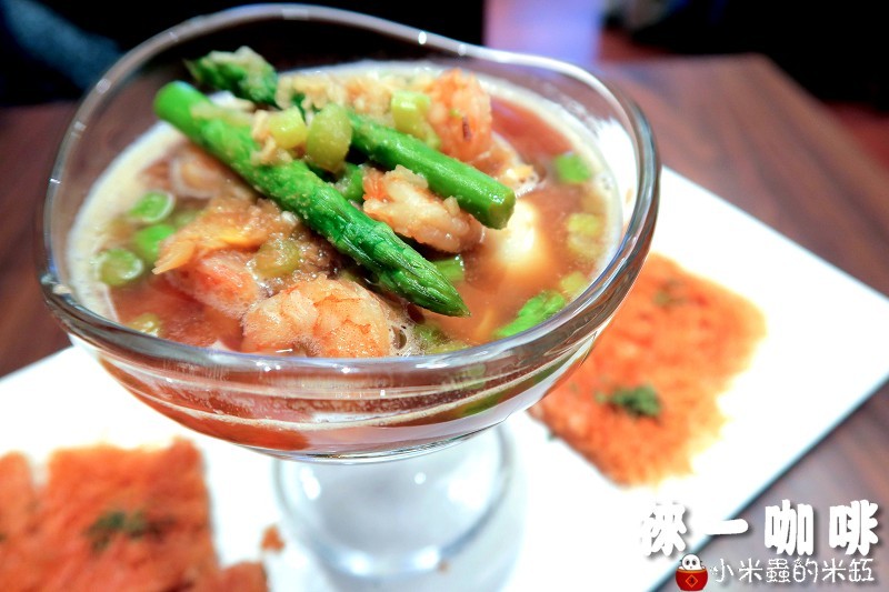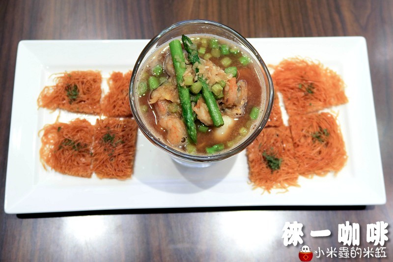 酥酥的外皮裡包著蝦仁、蘆筍,以美奶滋做餡