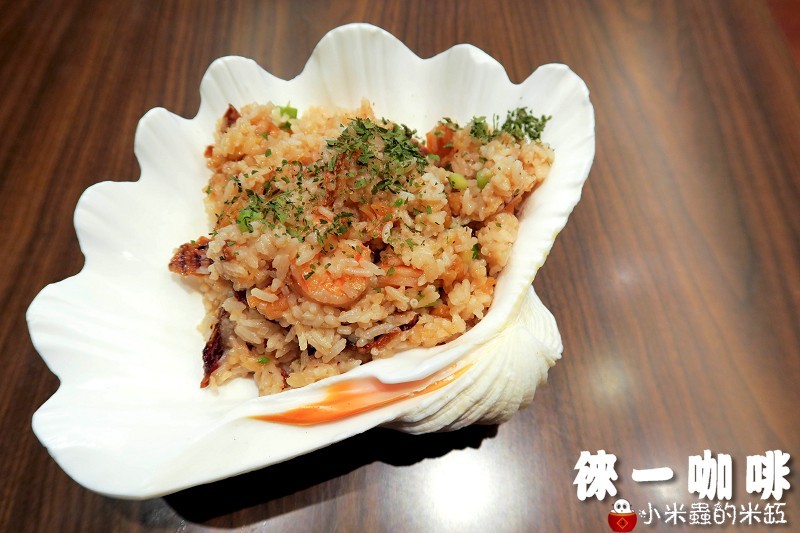 海鮮炒飯用貝殼盛裝的方式還滿有海味的!!