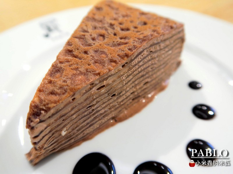 柔軟Q彈的餅皮一層一層的堆疊起,伴隨著巧克力的苦甜與牛奶的濃醇氣息