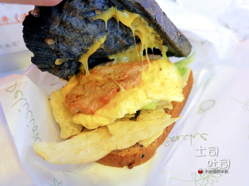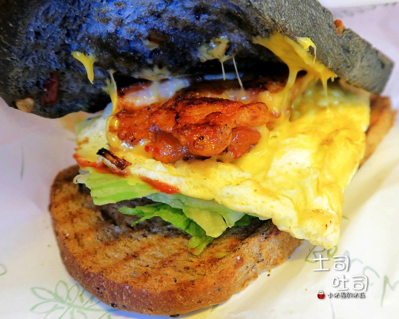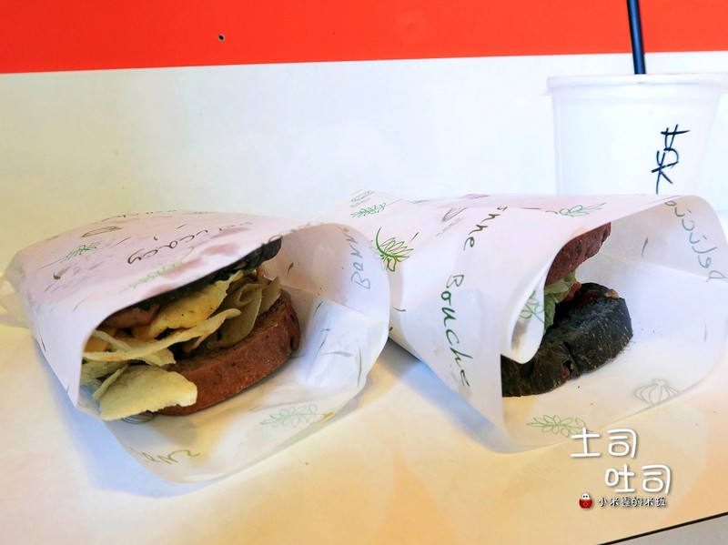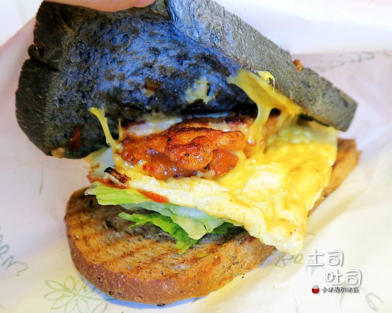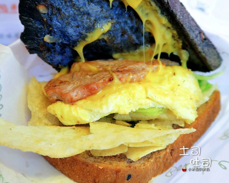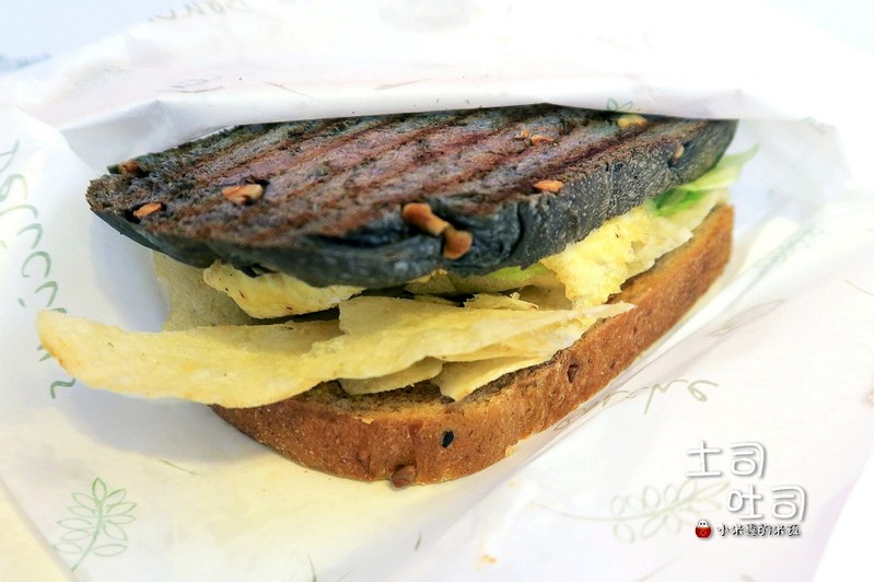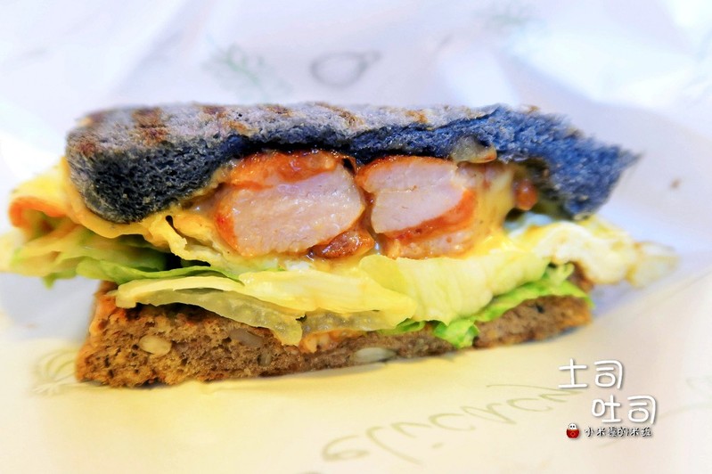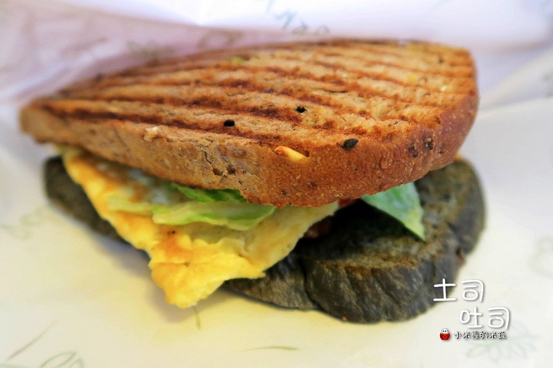 吐司是以全麥吐司與竹炭吐司兩者混搭