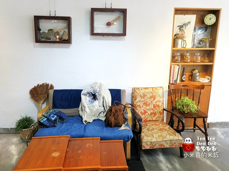 【點點甜甜】的裝潢展現出中性俐落的風格,水泥牆空間裡,擺放了許多木製的家具與桌椅