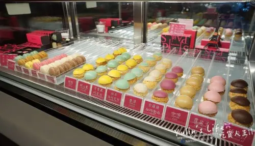 甜點櫃裡,有少女酥胸之稱的馬卡龍、小蛋糕、派、波菲堤等法式甜點,這些都是直接從法國空運來台的喔!!